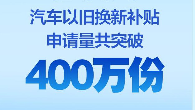汽車(chē)以舊換新補(bǔ)貼申請(qǐng)量共突破400萬(wàn)份