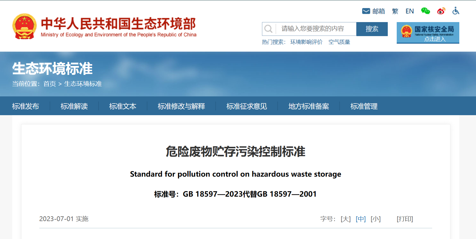 生態(tài)環(huán)境部:危險廢物貯存污染控制標(biāo)準(zhǔn)更新