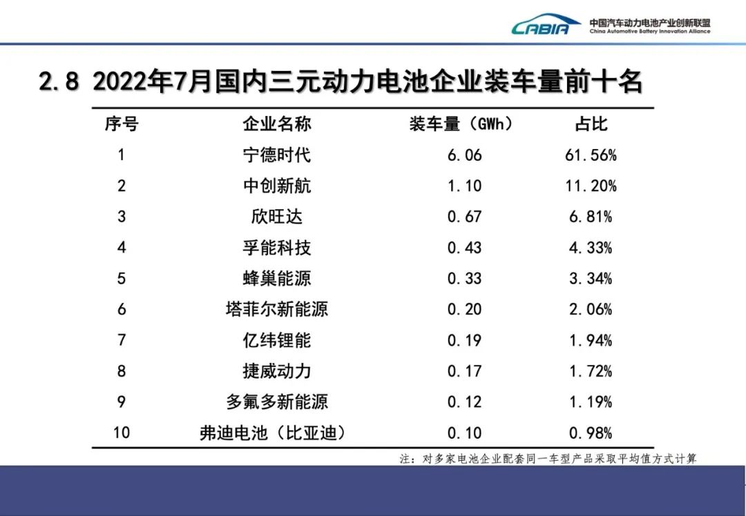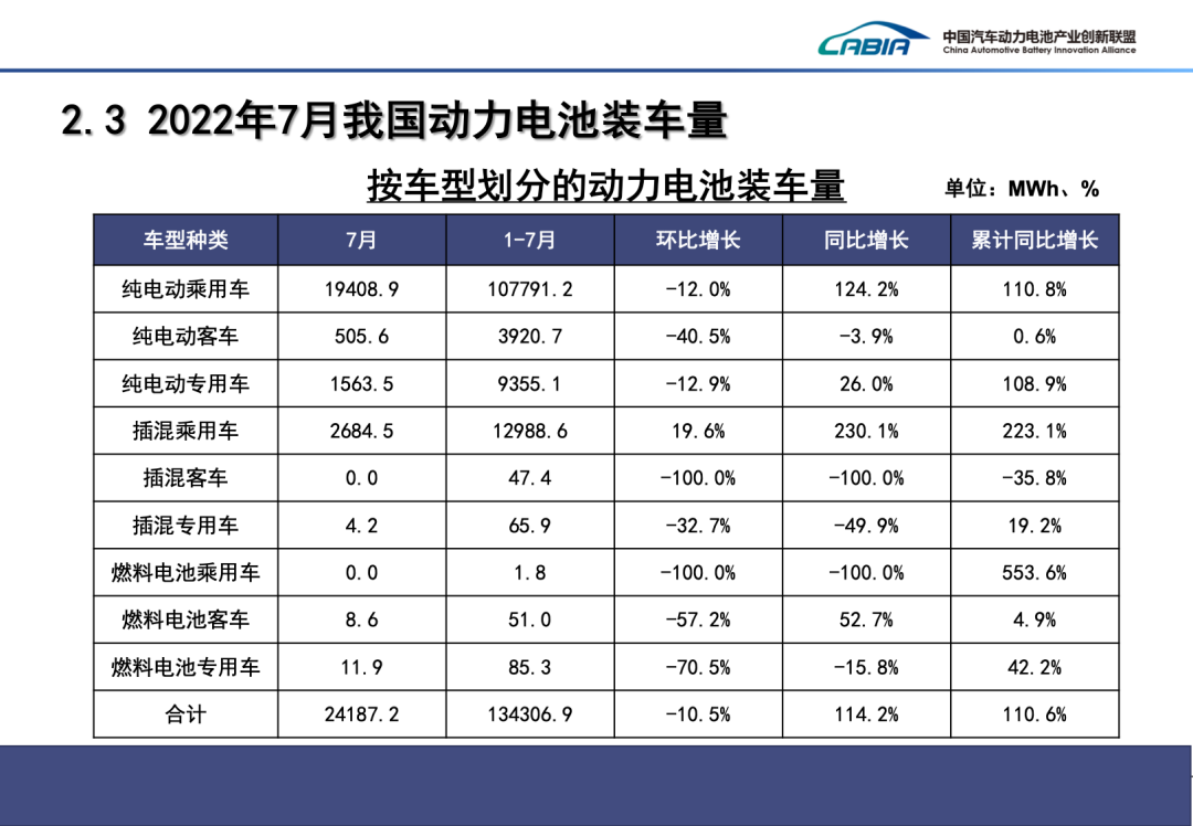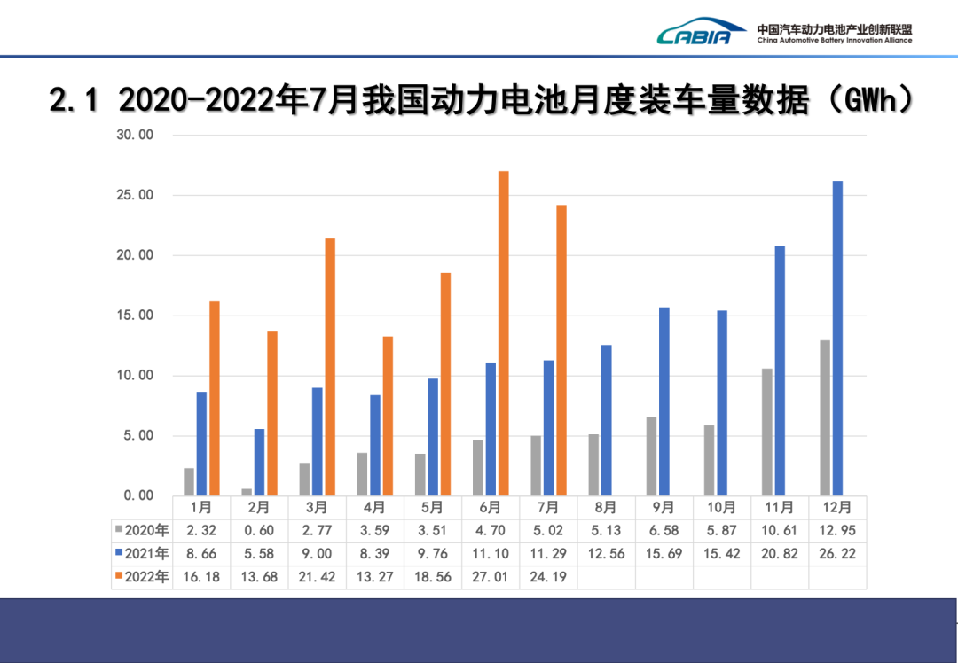 2022年7月動力電池月度數(shù)據(jù)發(fā)布如下。