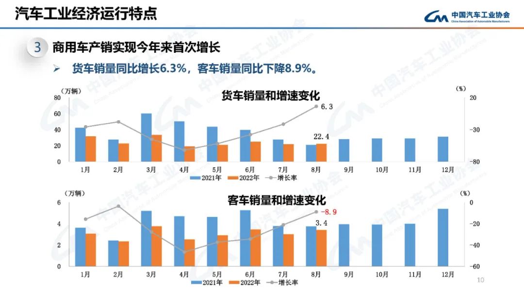 2022年8月,汽車產(chǎn)銷同比延續(xù)保持快速增長勢頭,購置稅優(yōu)惠等促消費(fèi)政策持續(xù)發(fā)力,乘用車消費(fèi)企穩(wěn)上升,即使經(jīng)濟(jì)運(yùn)行有波動(dòng),消費(fèi)依然堅(jiān)韌,已逐步恢復(fù)到正常狀態(tài);商用車產(chǎn)銷實(shí)現(xiàn)今年以來首次同比增長;本月新能源汽車產(chǎn)銷、汽車出口同比均創(chuàng)歷史新高。
